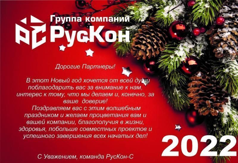 Дорогие друзья, ООО «ГК РусКон-С» спешит поздравить вас с наступающим новым 2022 годом!